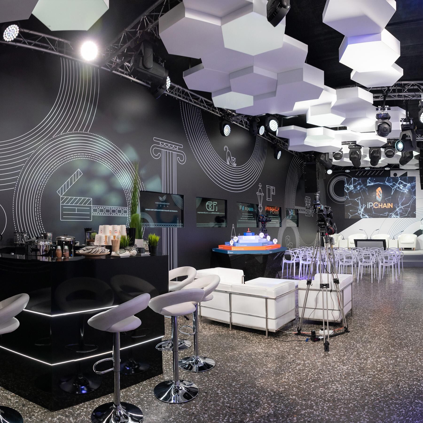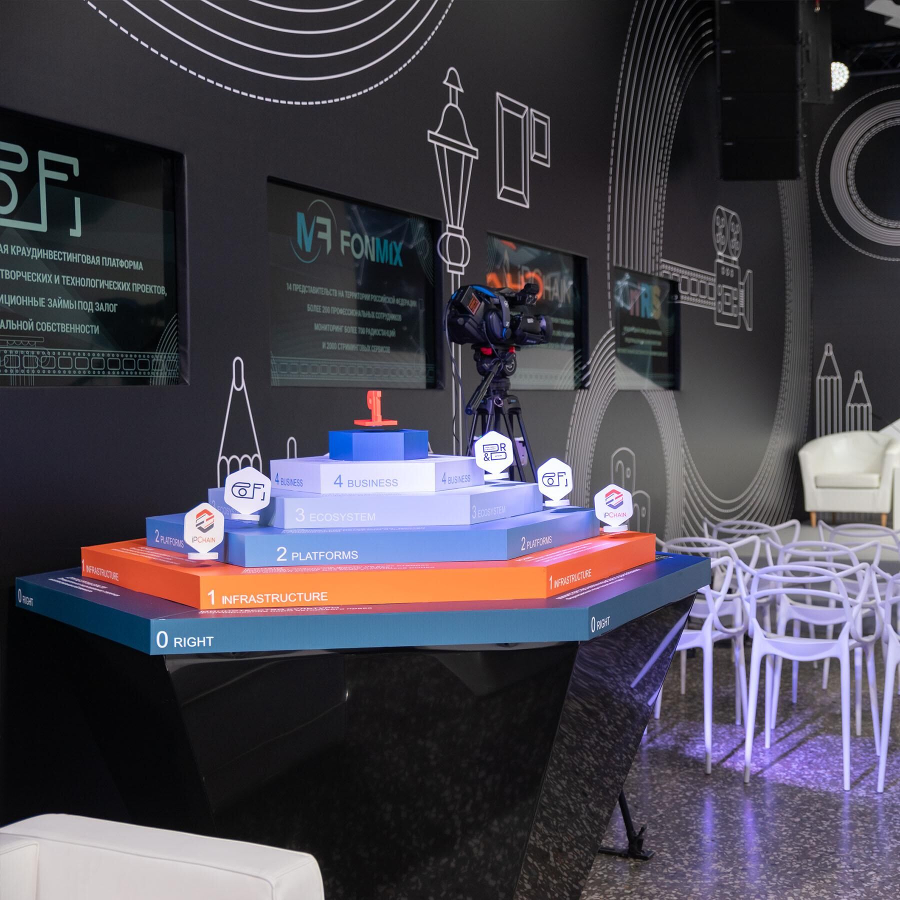 - осуществлена застройка 300 кв. м выставочно-дискуссионного пространства с современным digial-оборудованием, сценой со светодиодным экраном, шестью интерактивными презентационными зонами, зрительным залом на 30 человек, лаундж-зоной с собственным баром, 3D-фотозоной, интегрированной и стилизованной под выставочную экспозицию РЭМ;