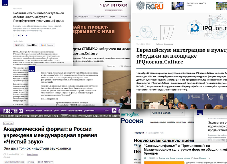 Работу IPQuorum.Culture освещали информационные партнеры, в том числе ТАСС, «Российская газета», ИА InterMedia, Союз журналистов России и др.